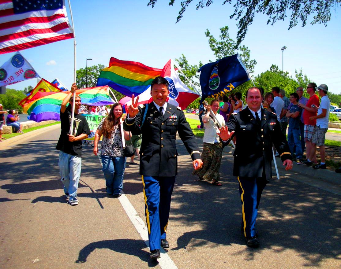 Lt. Dan Choi and Dan Manning march in Wichita Pride Parade. Both were discharged under DADT. (photo by David Quick)